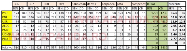 Informații amănunțite cu situația voturilor puteți găsi în tabelul atașat realizat de apahida.ro.