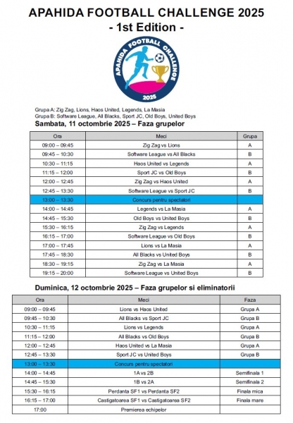 Apahida Football Challenge începe mâine la ora 9! Surprize pentru spectatori pregătite de organizato