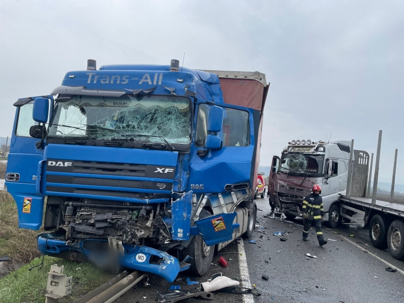 Forțele noastre au găsit la fața locului două autotrenuri avariate, iar conducătorii auto au reușit să se autoevacueze. Unul dintre aceștia, de aproximativ 60 de ani, primește îngrijiri medicale din partea paramedicilor SMURD.