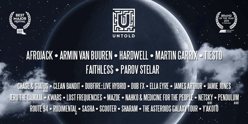 UNTOLD a fost desemnat BEST MAJOR FESTIVAL în cadrul European Festival Awards 2015, eveniment ce a avut loc în Groningen, Olanda. O altă recunoaștere a venit din partea celui mai de seamă reprezentant național al industriei de marketing și comunicare, International Advertising Association Romania (IAA) care a oferit festivalului titlul de Brandul Anului 2015. UNTOLD 2016 va avea loc în perioada 4-7 august, iar pe scena vor urca peste 150 de artiști internaționali de renume, dintre care: AFROJACK, ARMIN VAN BUUREN, HARDWELL, MARTIN GARRIX, TIESTO, FAITHLESS, PAROV STELAR, Chase and Status DJ Set, Clean Bandit, Dannic, Dubfire Live: Hybrid, Dub Fx, Ella Eyre, James Arthur, Jamie Jones, Jeru the Damaja, Kwabs, Lost Frequencies, Mazde, Nahko and Medicine for the People, Netsky DJ Set, Pendulum & Verse DJ Set, Route 94, Rudimental DJ, Sasha, Scooter, Sharam, The Asteroids Galaxy Tour, Y'akoto.
