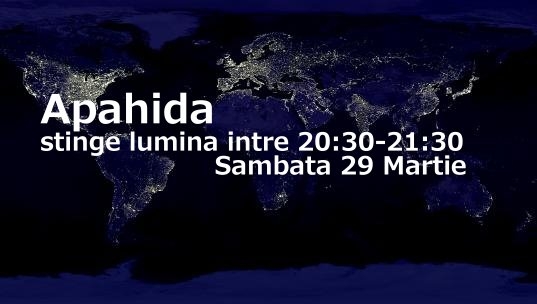 In aceasta zi la nivel mondial se sarbatoreste Ora Pamantului. In fieacre tara de la ora 20:30 la 21:30 oamenii sunt invitati sa stinga luminile si restul consumatorilor in semn de respect pentru aceasta planeta si ca un gest de protest fata de poluarea alarmanta la nivel mondial.