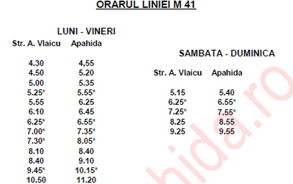 Cursele marcate cu indicativul steluță * se fac până la Câmpenești!